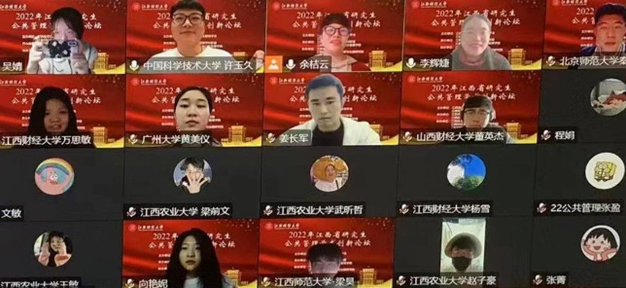 2022年11月26日,由江西省学位与研究生教育学会、江西财经大学主办,江西省高校公共管理学科联盟、江西财经大学财税与十大买球的正规网站承办的2022年江西省研究生公共管理学术创新论坛以线上方式顺利召开。此次论坛的主题为“数字化时代的公共治理理论与创新”,来自全国公共管理学科的专家学者、硕博研究生共计290余人在线参会。十大买球官网2020级行政管理研究生王琼琼、2020级社会保障研究生董英杰、2021级行政管理研究生赵丽英三位同学应邀参会并发言。