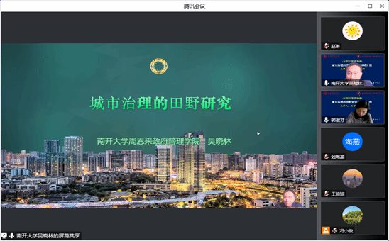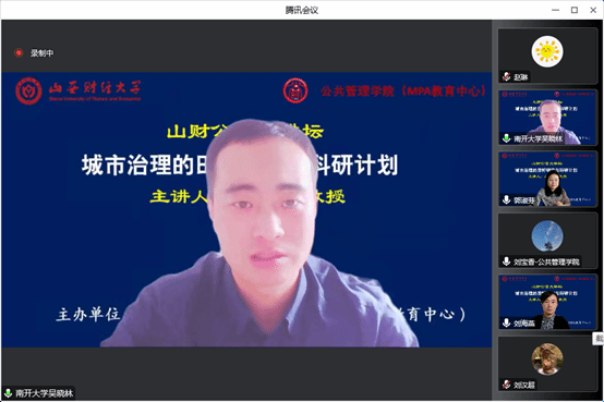 2022年11月25日上午,十大买球的正规网站主办的“山财公管大讲坛”举行第三场讲座,南开大学周恩来政府管理学院副院长、博士生导师吴晓林教授拨冗莅临做了题为“城市治理的田野研究与科研计划”的报告。十大买球的正规网站院长郭淑芬教授主持了本次大讲坛。来自校内外的100余名师生线上聆听了报告。