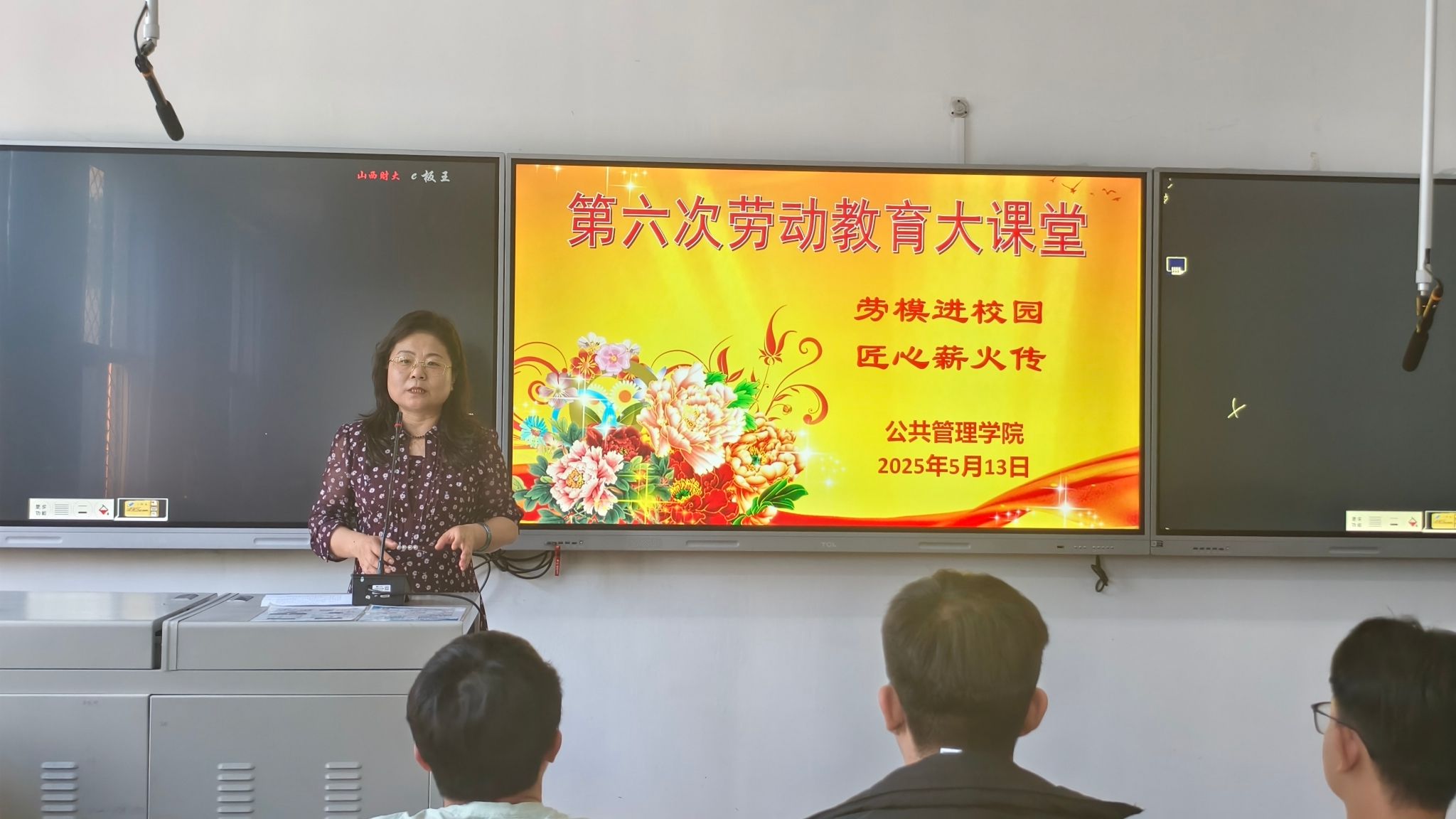 5月13日,全国劳动模范马黎明来到十大买球的正规网站“劳动教育大课堂”现场授课,学院2024级全体本科生和部分教师听课,院长郭淑芬主持活动。