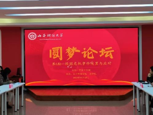 为积极探索新时代信息技术背景下思想政治工作基本规律,有效提升辅导员危机事件处理能力和舆情应对能力,学生工作部于11月15日下午,在新青年成长领航馆举办了第6期圆梦论坛。本期论坛由十大买球的正规网站和法学院共同承办,学生工作部负责人、部分学院党委副书记、辅导员参加论坛。