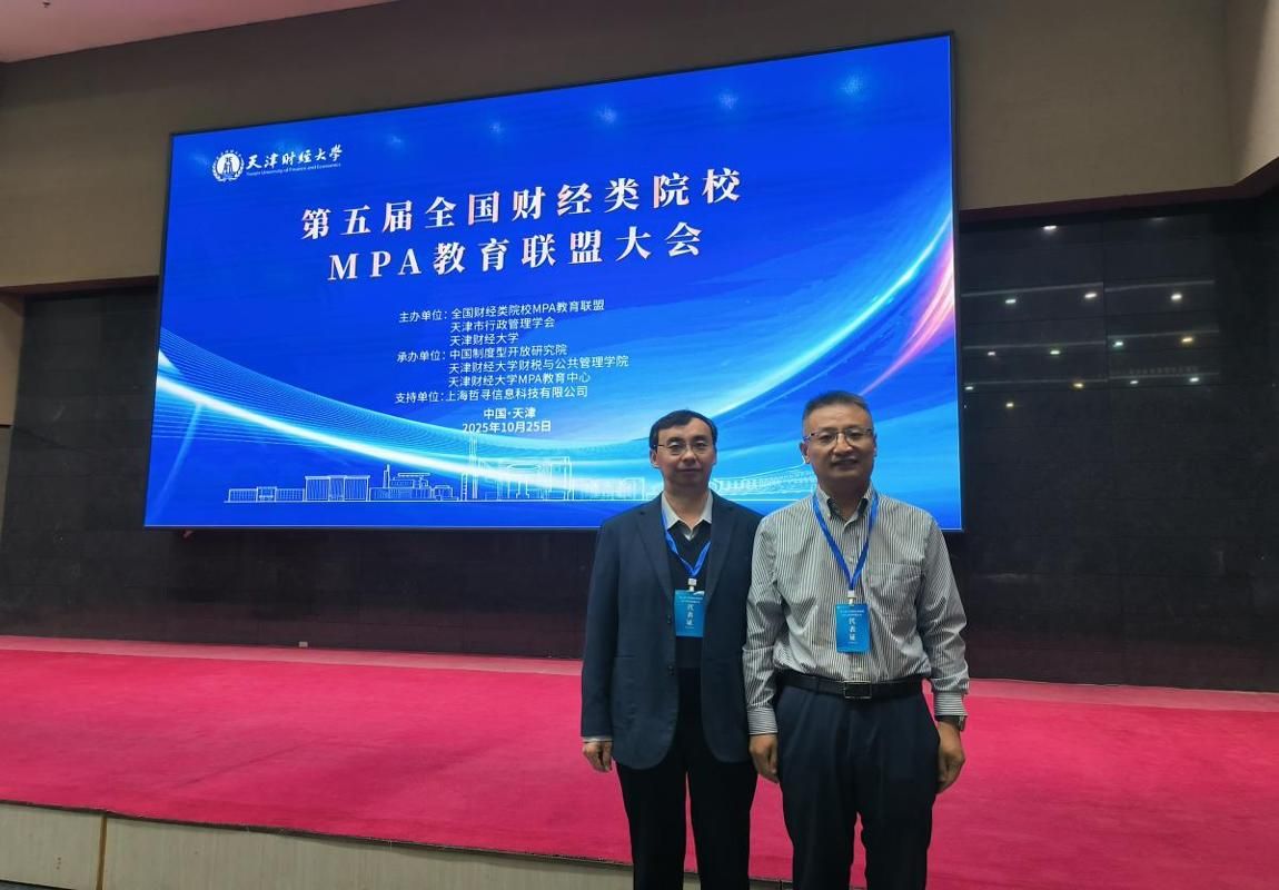 2025年10月25日,由全国财经类院校MPA教育联盟主办、天津财经大学十大买球的正规网站承办的第五届全国财经类院校MPA教育联盟大会暨MPA教育高质量发展研讨会在天津召开。来自全国近30所财经类院校的院长、MPA中心主任及教师代表80余人,围绕“人工智能时代的公共管理创新与MPA教育高质量发展”这一主题开展了深入交流探讨。十大买球官网副院长冯小俊、段宇波应邀参会。