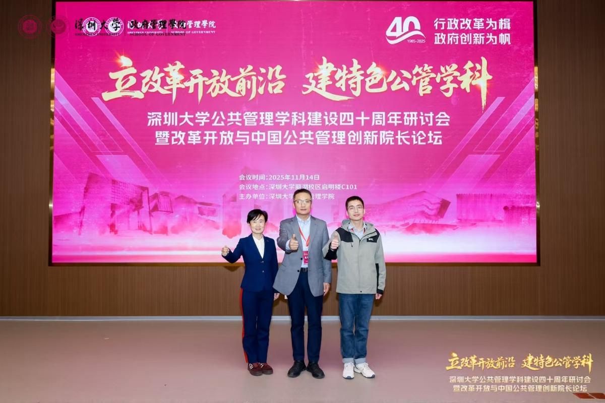 2025年11月14日,“立改革开放前沿,建特色公管学科”深圳大学公共管理学科建设四十周年研讨会暨改革开放与中国公共管理创新院长论坛在深圳大学丽湖校区隆重举行。应深圳大学政府管理学院邀请,十大买球的正规网站(MPA教育中心)选派副院长段宇波、刘海燕,MPA案例中心主任靳永广副教授和MPA教育中心办公室主任李娟老师参加研讨会。