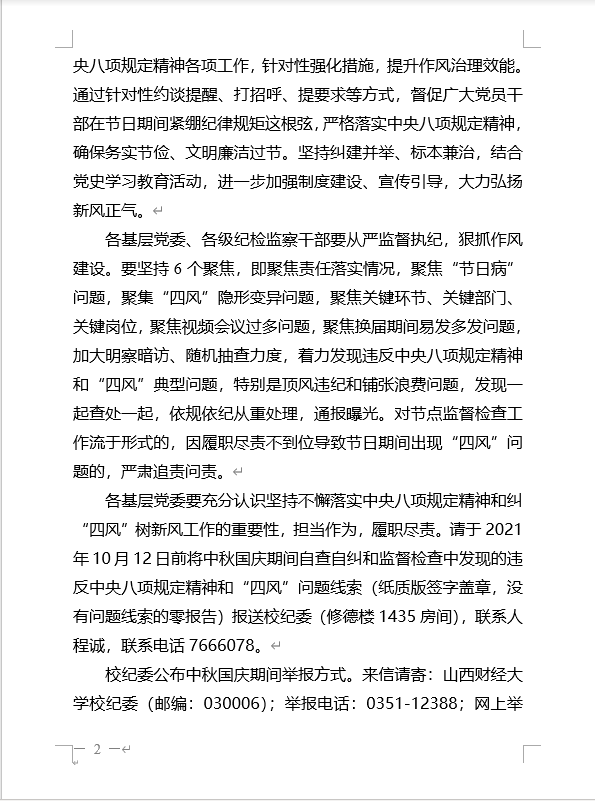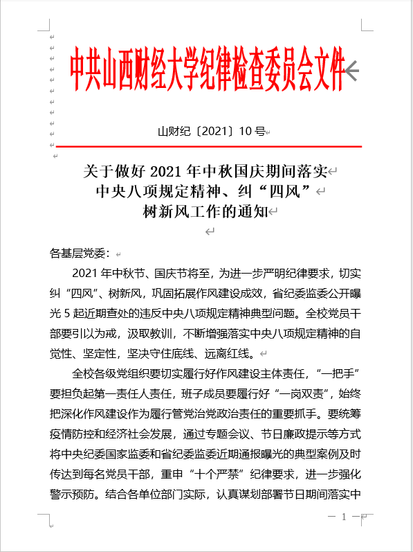 关于做好2021年中秋国庆期间落实中央八项规定精神、纠“四风”树新风工作的通知