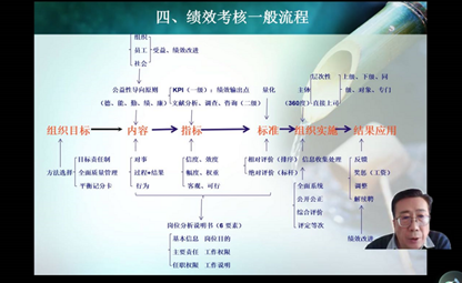 赵金玺教授从“事业单位绩效考核发展历程”“事业单位绩效考核一般流程”“事业单位绩效考核工作中应注意的几个问题”三个方面进行了系统讲解。他首先结合事业单位绩效考核的背景和意义进行了总体概述,指出“看病难、看病贵”、“上学难、上学贵”等问题的背后除了公共投入、体制等原因,主要问题在于公共服务方面。公益性事业单位是承担公共服务的主体,推进绩效管理是改善公共服务,深化公益性事业单位改革的迫切需要和现实选择。其次,赵金玺教授从绩效考核的组织目标、内容、指标、标准、组织实施、结果应用等六方面指出了绩效考核的一般流程以及事业单位绩效考核的相关方法。最后,强调绩效考核应注意的几个问题,指出绩效考核是绩效管理的过程之一,绩效考核不等同于绩效管理、绩效考核既要注重过程也要注重结果、绩效考核最具个性化,没有最好只有更好、绩效考核要坚持公平与效率,公正公开是保障。