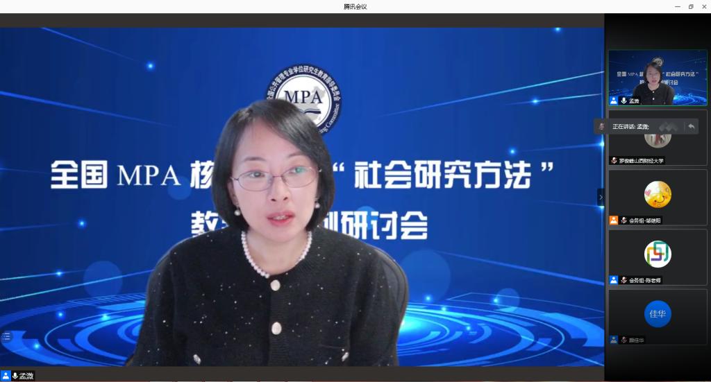 2021年1月16至17日,全国公共管理专业学位研究生教育指导委员会主办的MPA核心课程“社会研究方法”教学与案例研讨会在腾讯会议线上举行,来自不同高校、科研院所的240多位老师参加会议。十大买球官网罗俊峰、郎杰燕两名教师参加此次会议。